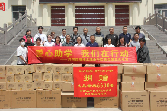在全省学习贯彻习近平新时代中国特色社会主义思想主题教育之际,5月14日上午,副校长陈君丽带领机关第三党总支党员及教师代表一行来到浚县实验中学开展“爱心助学”捐赠活动。浚县人民政府副县长刘建军、教体局副局长李再文、乡村振兴局副局长牛会海等领导参加捐赠仪式。捐赠仪式由李再文主持。