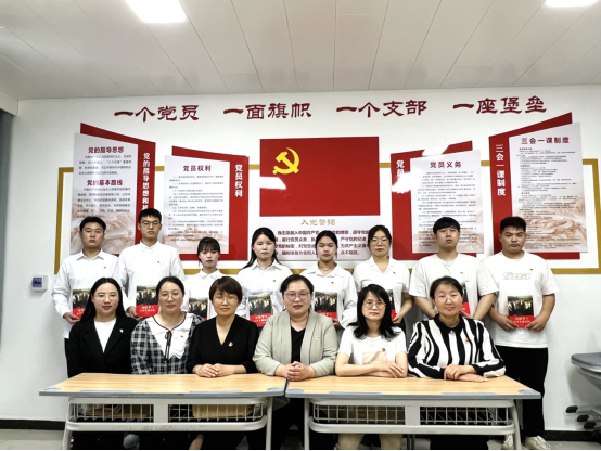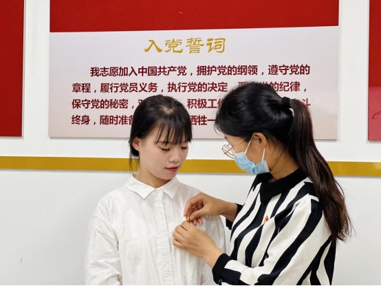 会上,郭盈新等10名同志依次向党组织汇报预备期间个人表现。入党介绍人汇报学生预备期间考察情况,就能否如期转正表明意见。随后,全体党员采取无记名投票方式进行表决。经表决,一致同意郭盈新等10名同志如期转正。随后,入党介绍人为10名同志佩戴党员党徽、赠送书籍并合影留念。