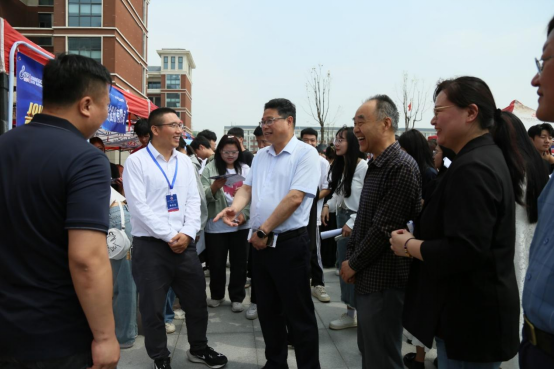 校领导走进双选会现场,详细了解招聘单位的行业分布和用人需求情况,耐心询问学生的求职需求和求职意向,认真听取用人单位对我校毕业生的就业反馈和对学校人才培养的意见建议,并对企业到校参加双选会表示衷心的感谢。