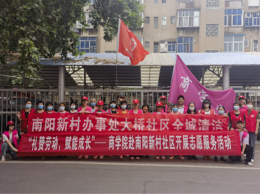 为深入学习贯彻党的二十大精神,践行社会主义核心价值观,强化学生思想道德素质和志愿服务意识,同时进一步加强构建学校与社区共驻共建机制,形成“优势互补、资源共享、文明共建、共同发展”的党建工作新格局。5月19日商学院党总支书记苏云峰带领师生志愿服务队赴南阳新村办事处大桥社区开展志愿服务活动。