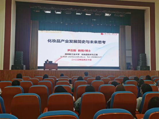 为把就业优先战略落到实处,推进就业指导工作,帮助在校生了解行业形势、增强择业意识,实现更加充分、更高质量就业。5月30日下午,郑州轻工业大学尹志刚教授应邀在我校活动中心开展“化妆品产业发展简史与未来思考”专题讲座,讲座由化妆品教研室舒航老师主持,化学工程学院师生近400人参加此次讲座。