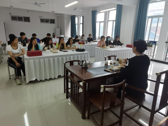 为进一步推动中华优秀传统文化与专业课融合,推进实践课程教学模式改革创新,5月30日,经济管理学院特邀开封市语哲茶文化博物馆馆长刘青女士为酒店管理专业学生开展“茶艺文化进应院”实践课教学。