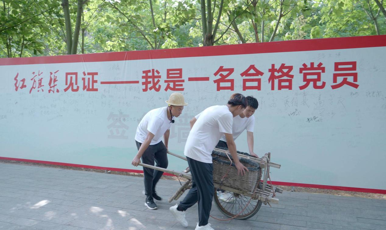 为了能够更加感同身受,程老师让同学们体验劳动工具独轮车,只是空车学生推着已是十分困难、歪歪扭扭,而修渠期间这车里可是满载石块和工具的。大家更深刻地体会到在修建过程中,林县人民将自力更生、艰辛奋斗的红旗渠精神发扬到极致。他们的劳动工具就是两只手、一只镐,或者一根绳索,一根钢钎。困了天当被,地当床,饿了挖野菜、啃干粮,以愚公移山精神,终日挖山不止。没有水泥自己烧,没有炸药自己制,出现了“铁姑娘〞、“青年团〞、“神炮手〞、“凌空除险队〞等动人事迹,连小学生放学后都要捎上块石头送到山上,真是全民皆兵,万众一心。