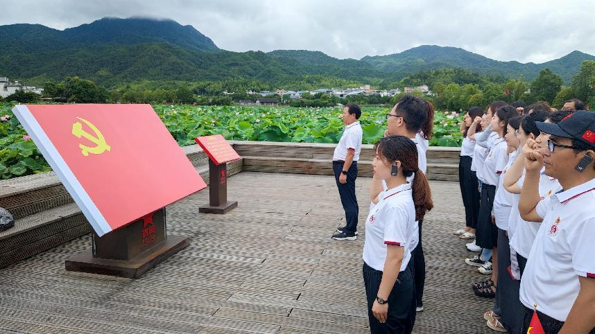 在古田会议会址前,面对鲜红的党旗,常新中带领全体党员重温入党誓词。大家用铮铮誓言抒发对党的忠诚和敬意,表达永远跟党走的信念和决心。