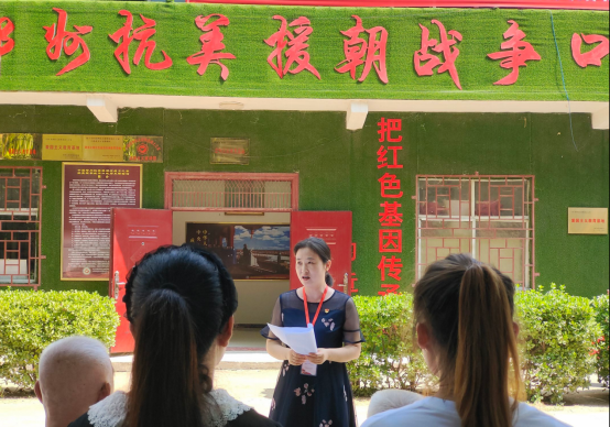 基础教学部党总支张艳娟老师作为教师代表发言:“自2021年6月25日我校与抗美援朝战争口述历史博物馆合作成立‘三个文化社会实践教育基地’以来,教师们将英雄故事传播,将爱国种子播撒,将革命文化传承到教学实践中,牢记使命担当,用教育教学佳绩传承红色精神,厚植爱国情怀。”