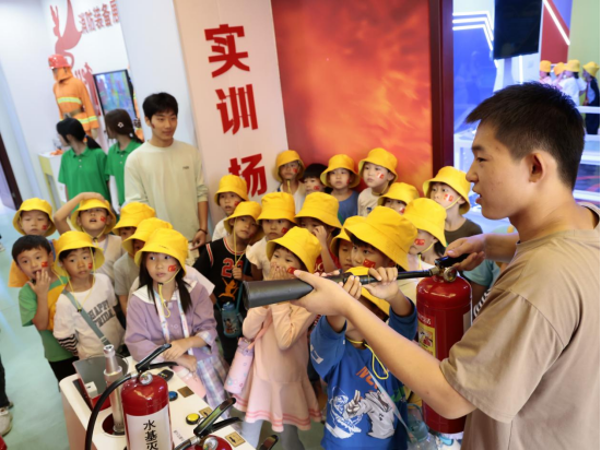 建筑工程学院党总支书记马春燕安排教师和志愿者全程护送,组织孩子们在建筑工程学院VR实训室“身临其境”感受安全小课堂。化学工程学院院长朱冰组织HSE安全体验馆的专职科普教师和学生志愿者们带领小学生走进场馆六大体验区,从电气安全事故,到火灾烟雾逃生,再到学习掌握各种火灾现场使用灭火器的方法及结绳训练……让孩子们在沉浸式体验下,深化消防、工业、家居生活等各个领域的安全教育学习,增强安全意识,提升危险自救、救人能力。