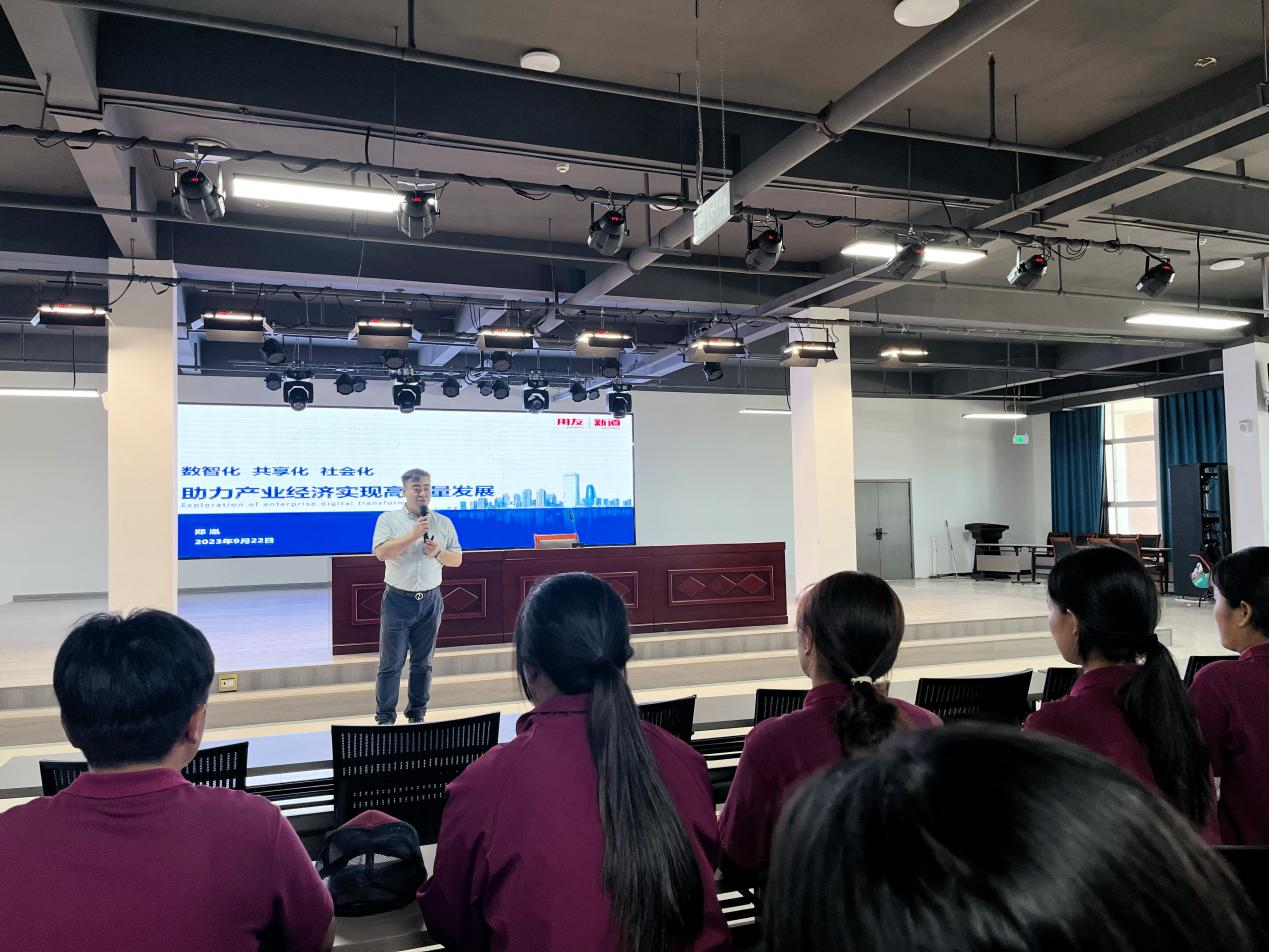 为深入推进数智财经产业学院建设,夯实高质量人才培养,拓展财经专业学科视野,适应数字经济时代,9月22日上午,数智财经产业学院邀请新道河南分公司总经理、用友集团高级专家、河南省高教学会常务理事郑胤先生在开封北院学生活动中心开展“数智化 共享化 社会化助力产业经济高质量发展”专题讲座。本次讲座由经济管理学院、数智财经产业学院院长张召哲主持,大数据与财务管理、金融科技应用等专业师生参加讲座学习。