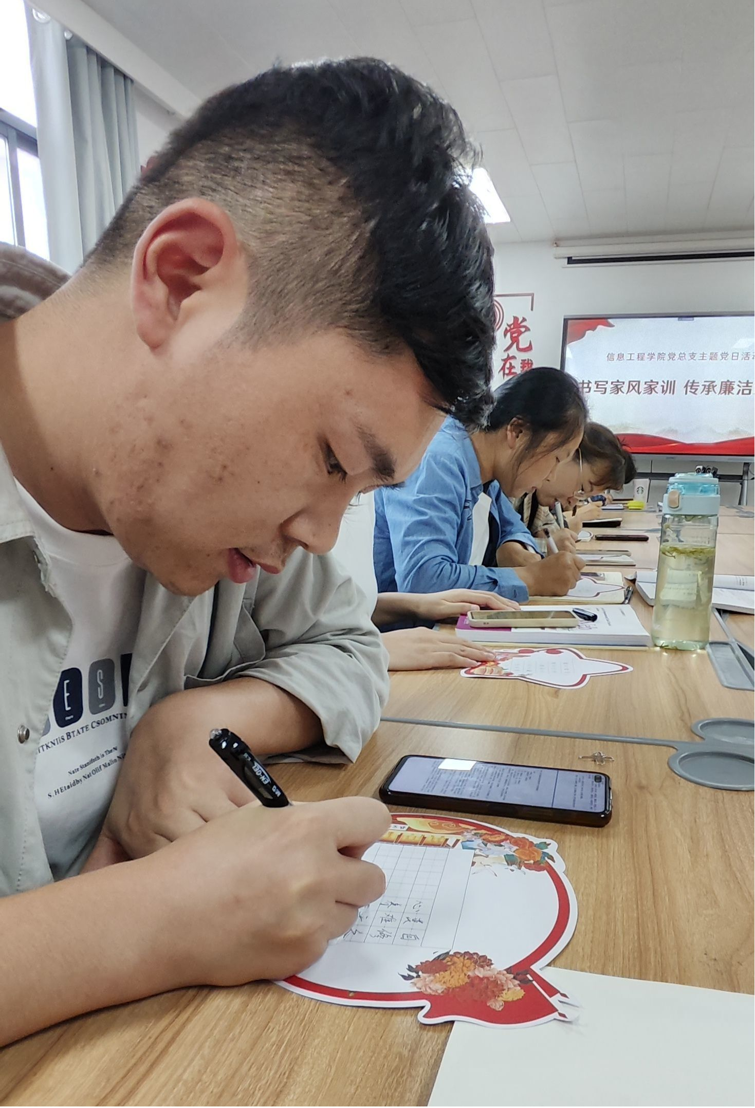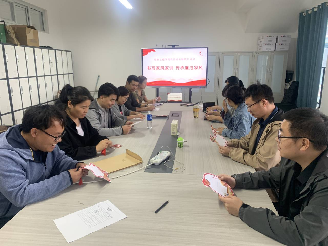 为了传承中华民族优良传统,树立良好的家风家训氛围,9月26日信息工程学院党总支在郑州校区A514、开封校区A314开展“书写家风家训 传承廉洁家风”主题党日活动,活动由信息工程学院党总支书记崔琳主持,全体教师参与。
