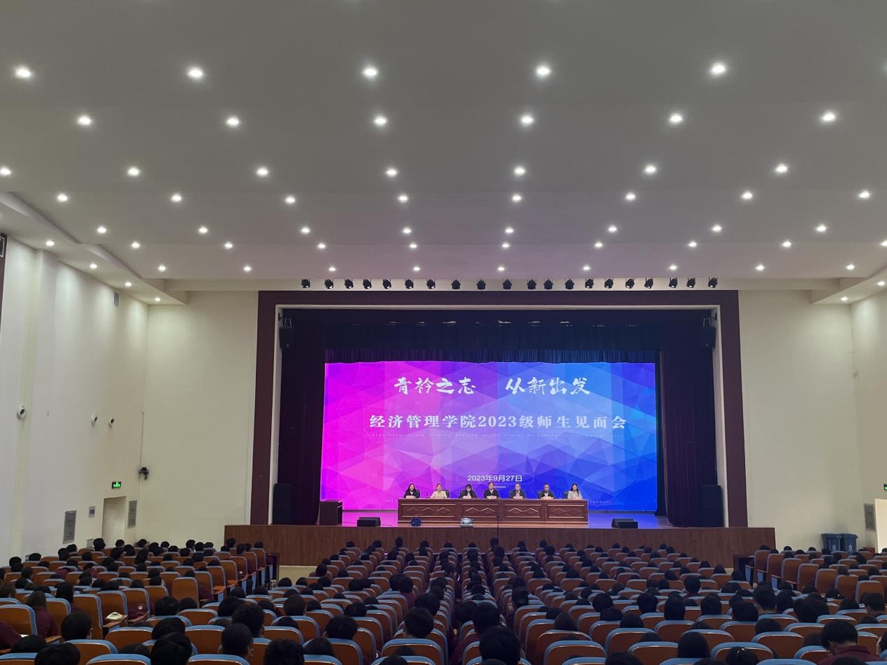 青衿之志,从新出发。9月27日上午,经济管理学院在我校学生活动中心隆重举行2023级师生见面会。学院党政负责人、相关任课教师及新生辅导员出席此次见面会,会议由经济管理学院副院长聂蕴主持。