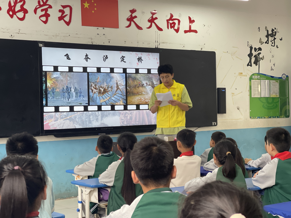 经典再现。活动现场,青年志愿者周照昀以红色故事《飞夺泸定桥》为切入,给小朋友们讲解了伟大的长征精神,激励同学们积极向上、努力学习,踔厉奋发、勇毅前行,走好新时代我辈长征路。在场小朋友专注听讲,进一步坚定理想信念。