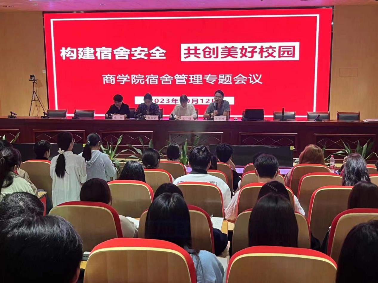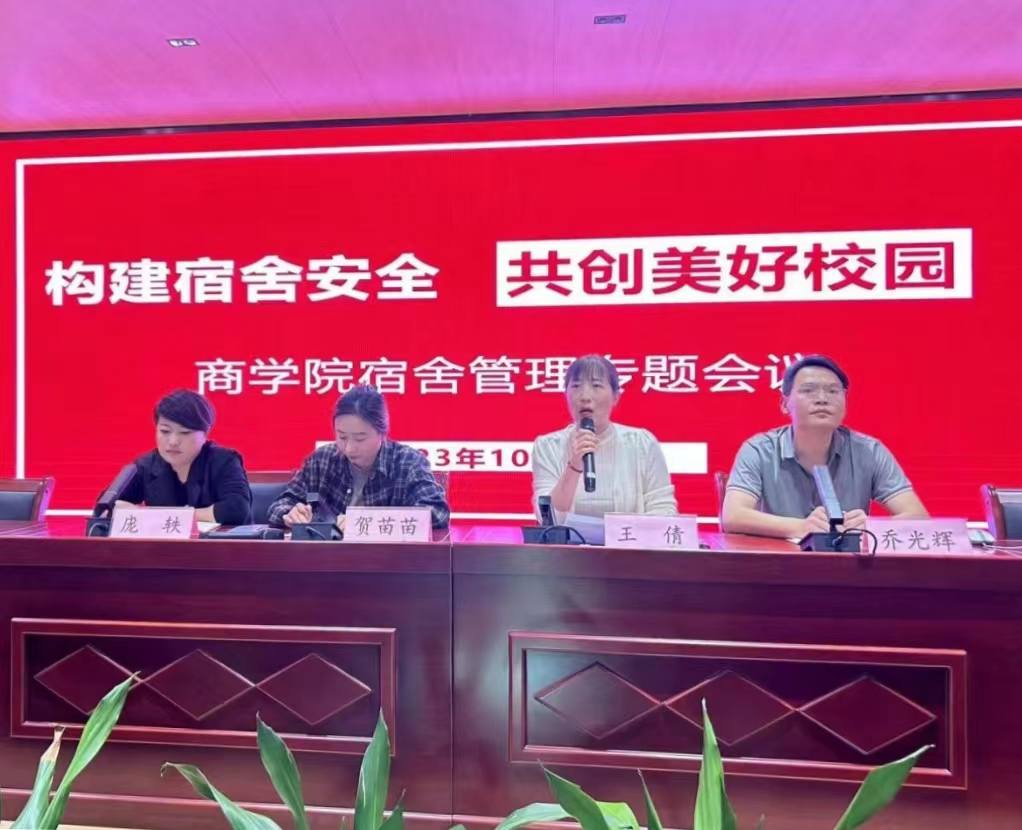 为进一步提升学生宿舍管理水平,营造安全和谐的宿舍环境。10月13日中午,商学院在开封校区(北院)A102教室组织召开宿舍管理专题会议,会议由学院团总支书记贺苗苗主持,商学院党总支副书记王倩、相关辅导员教师、各班学生代表参加此次会议。