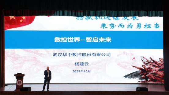 为进一步推动具有职业教育特色的校园文化建设,加强人才培养质量,拓宽校企合作渠道,打造实习就业平台,2023年10月18日,机电工程学院于学生活动中心开展“数控世界 智启未来”企业文化进校园专题宣讲会,本次会议邀请到武汉华中数控股份有限公司中北片区总监杨建云作为主讲,机电工程学院院长黄双成、团总支书记郭娇娇以及全体2023级学生参加了本次活动。