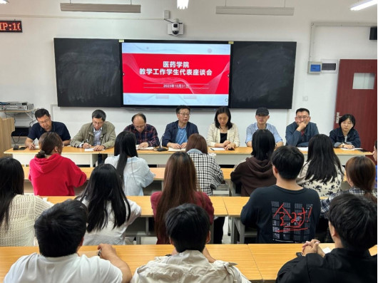为进一步了解2023级新生学习情况,加强学院教育教学管理,提高教学服务水平和教学质量,10月31日中午,医药学院在开封校区北院教学楼B507教室召开教学工作学生代表座谈会。医药学院院长李明奇、学校教务处副处长李元元、副院长李禄辉、各专业教研室主任及2023级各班学生代表参加了此次座谈会。会议由李明奇主持。