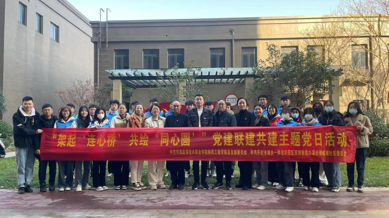 为进一步学习贯彻落实习近平新时代中国特色社会主义思想和党的二十大精神,增强校地融合,凝聚青春力量,助力社会基层治理,根据学校相关工作要求,制药工程学院党总支于12月5日赴开封市橄榄城社区开展“党建联建共建”主题党日活动。