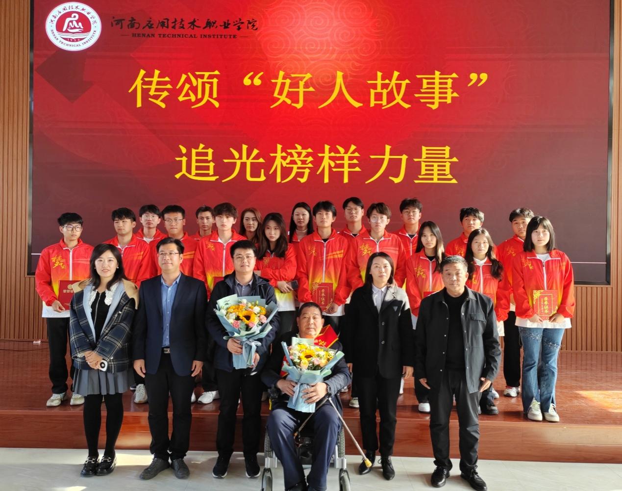 有一种精神,温暖人心催人奋进;有一种力量,生生不息历久弥新。为充分发挥党员榜样先锋模范作用,进一步增强共产党员的光荣感和使命感,教育引导党员师生在履职尽责中践行初心使命,在实践实干中强化责任担当,12月8日本科部党总支联合医药学院党总支开展了“传颂好人故事,追光榜样力量”主题宣讲活动。活动邀请到了“中国好人”、许昌市残联副主席、许昌市慈善总会副会长任万祥,以及“禹州好人”、禹州市南苌庄村党支部副书记、河南省郑艺艺考学校创始人桑帅晖来讲述他们的先进模范事迹。学校党委委员、党委组织部部长、本科部党总支书记滕文锐,本科部主任蔡庄红,医院学院党总支书记崔咏梅、教师代表及学生代表出席了此次活动。