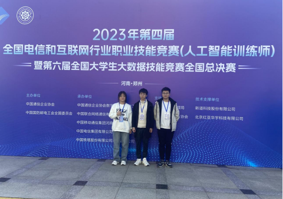 由中国通信企业协会与中国国防邮电工会全国委员会联合主办的“2023年第四届全国电信和互联网行业职业技能竞赛(人工智能训练师)暨第六届全国大学生大数据技能竞赛全国总决赛”于12月07日-09日在郑州举行,信息工程学院学生王豪权、张亚涛、苗晨晨在比赛中表现出色,以优异成绩,斩获职教学生组技能挑战赛全国一等奖。信息工程学院谢妞妞、郅忠强荣获优秀指导教师。