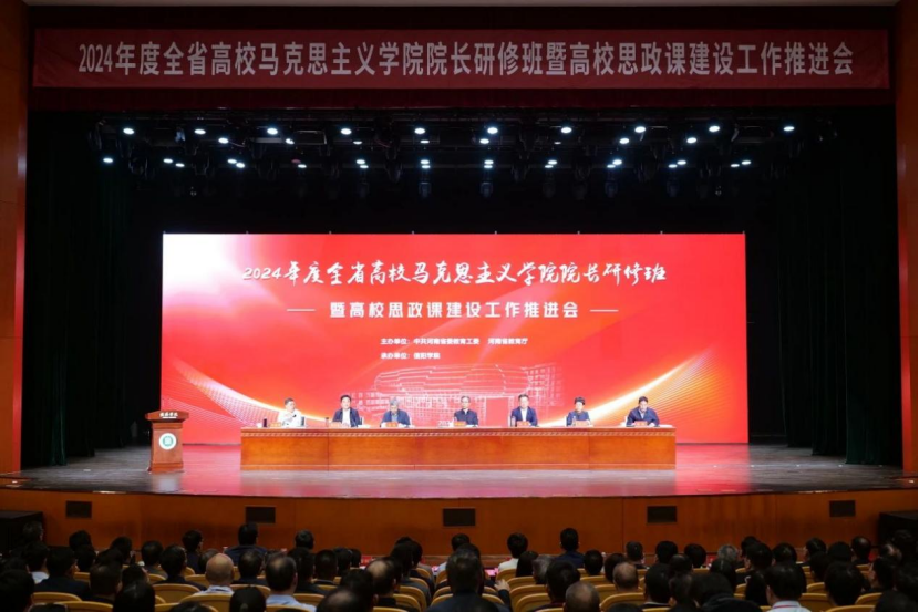 为深入学习贯彻党的二十大精神和习近平总书记在学校思想政治理论课教师座谈会上的重要讲话精神,总结回顾2023年度工作,安排部署2024年全省高校思政课建设重点任务,进一步提升高校马克思主义学院院长履职能力和水平,省委教育工委、省教育厅于4月17日—19日在信阳学院召开2024年度全省高校马克思主义学院院长研修班暨高校思政课建设工作推进会。
