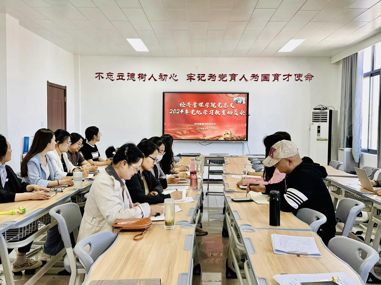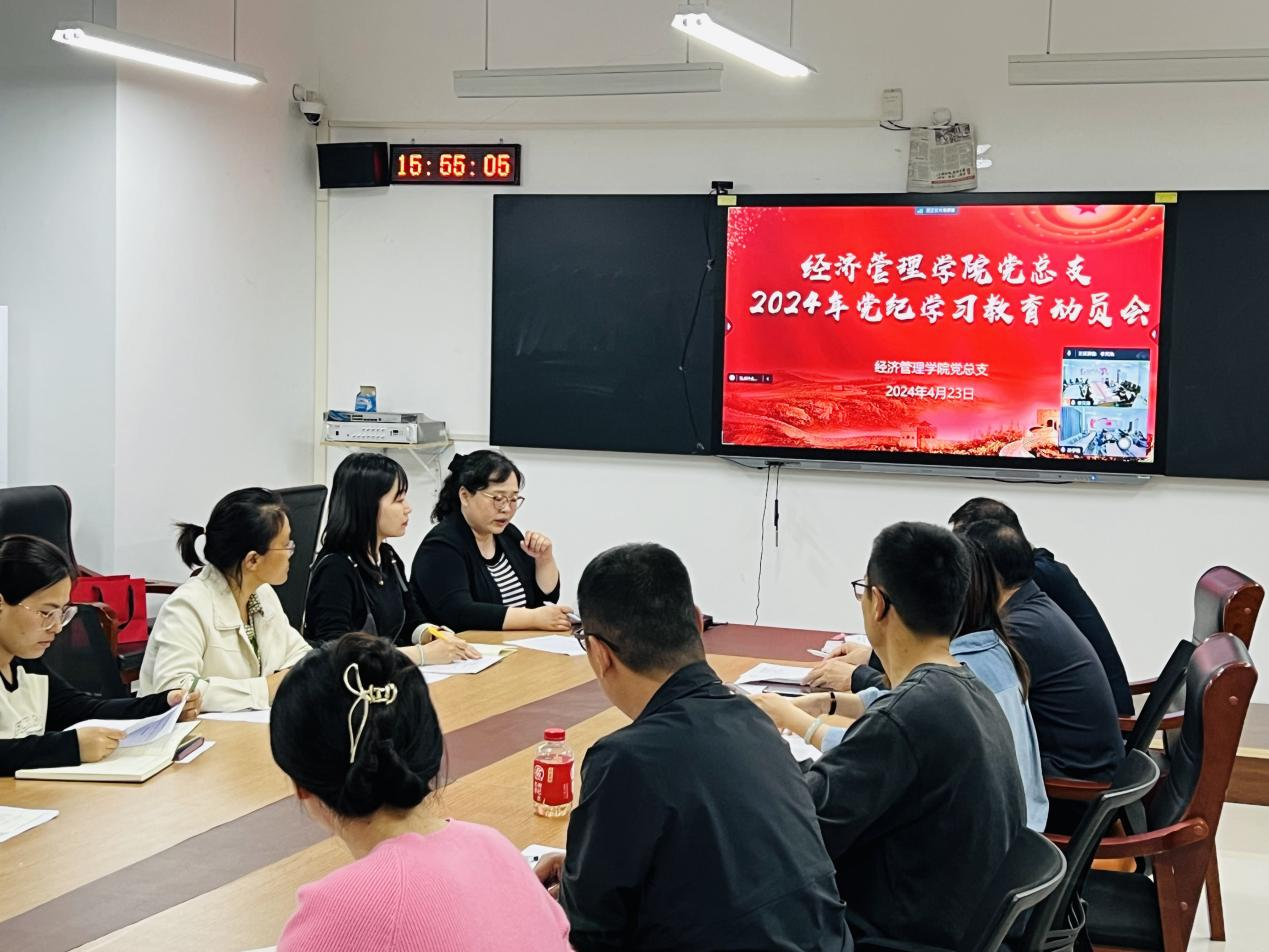 2024年4月23日,经济管理学院启动部署党纪学习教育相关工作。经济管理学院党总支书记李兆楠主持会议,全体党员教师参加会议。
