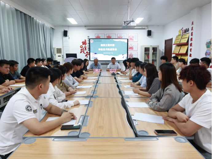 2024年6月17日下午,建筑工程学院2024届毕业生座谈会在行政楼A516会议室召开。副校长刘振民出席座谈会,学院党总支书记张虎、党总支副书记刘亚娟、教师代表和2024届毕业生代表参加了本次座谈会,会议由张虎主持。