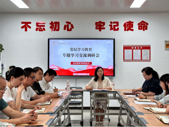 6月21日上午,经济管理学院党总支召开党纪学习教育专题学习交流会。校党委委员、纪委书记陈雅莉出席交流会,学院党员教师、辅导员参加学习交流。交流会由学院党总支书记李兆楠主持。