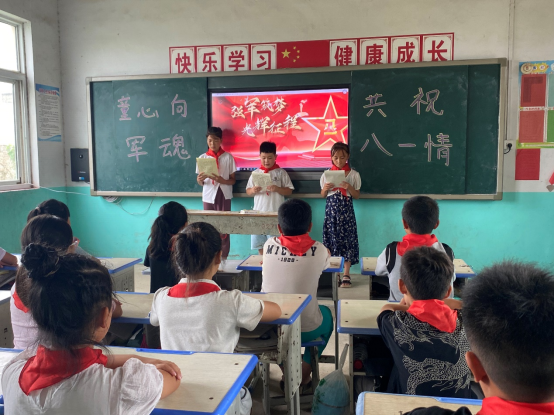 “红”心筑梦,领航少年爱国行。支教队通过讲述革命先烈的英雄事迹、传唱红色经典歌曲、情景朗诵、主题班会等形式,引导孩子们深入了解中国的革命历史,颂扬军人铁血丹心,传递爱国情感。在历史的回响与现实的璀璨中,孩子们深刻体会到国家之伟大,领悟到军人之奉献,强烈的民族自豪感在孩子们小小的心灵中发芽生长,坚不可摧。