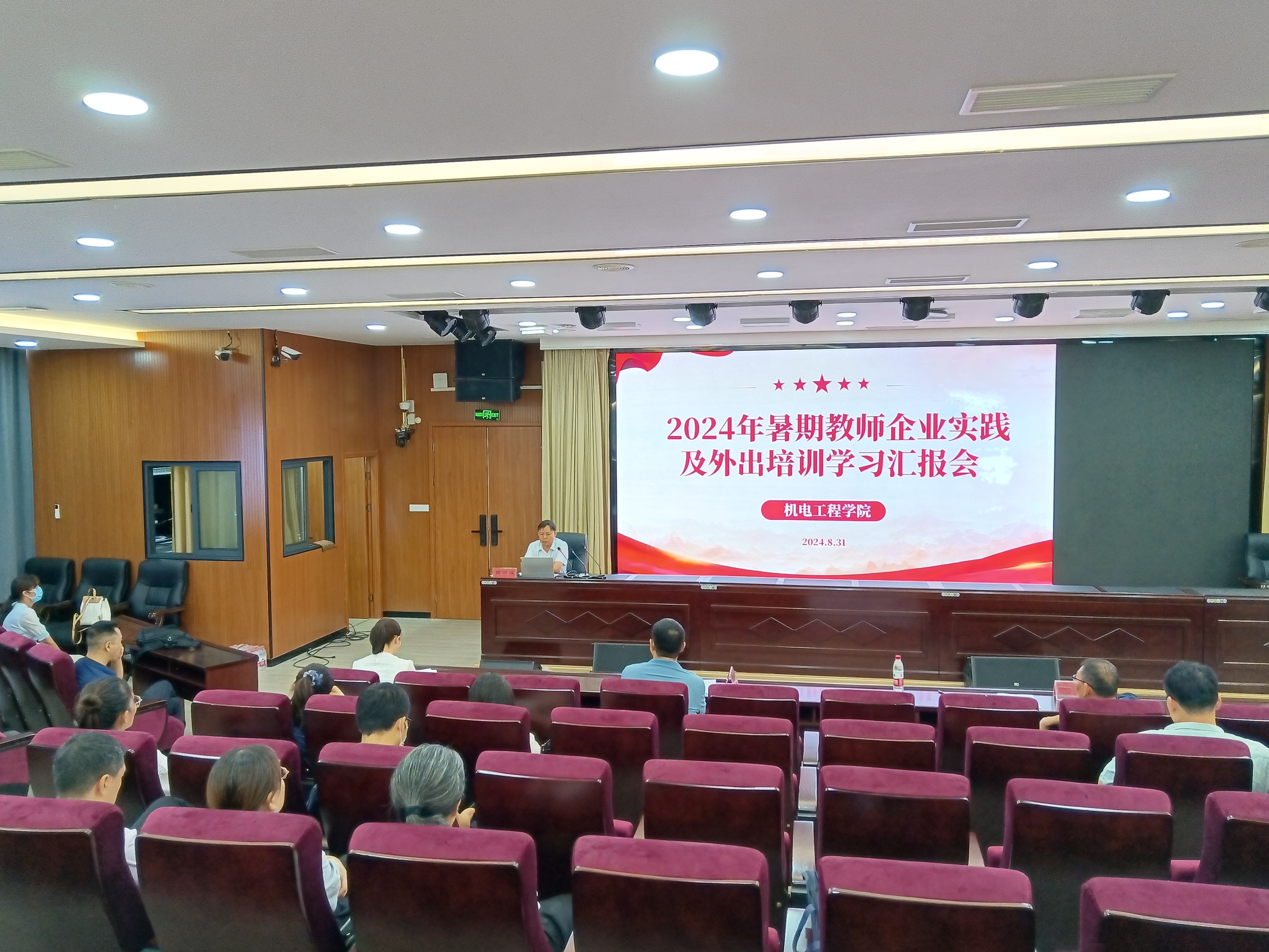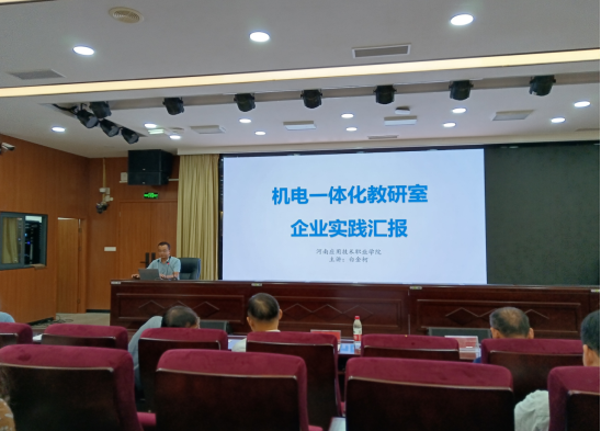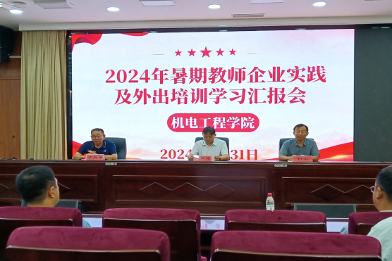 为总结教师企业实践成效,分享教师企业实践收获,进一步落实教育部等七部门印发的《职业学校教师企业实践规定》,规范教师进企业实践活动,提高教师专业发展水平,提升教师实践教学能力,全面推进机电工程学院师资队伍专业化建设,8月31日上午,机电工程学院在B楼学术报告厅举办2024年暑期教师企业实践及外出培训学习汇报会。教务处副处长付永,机电工程学院院长黄双成、副院长李凤银及全体学院教师参加汇报会,汇报会由李凤银主持。
