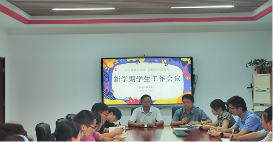 为落实学校党委关于新学期的工作安排,加强学生工作队伍建设,提升辅导员队伍凝聚力和战斗力,提高辅导员队伍专业水平和职业能力,推动学生思想政治教育工作高质量发展,扎实做好新学期学生工作,2024年9月3日下午,机电工程学院在办公楼316会议室召开新学期学生工作会议。机电工程学院党总支书记贾建树、党总支副书记、院长黄双成、党总支副书记耿丽敏以及全体专兼职辅导员参加了会议,会议由耿丽敏主持。