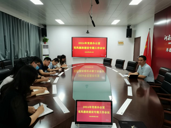 为进一步深入推进党风廉政建设工作,全面总结上半年党风廉政建设情况,安排部署下半年党风廉政建设工作任务,9月10日,党委办公室在行政楼415会议室召开2024年党风廉政建设专题工作会议,会议由党委办公室主任黄体锐主持,办公室全体人员参加。