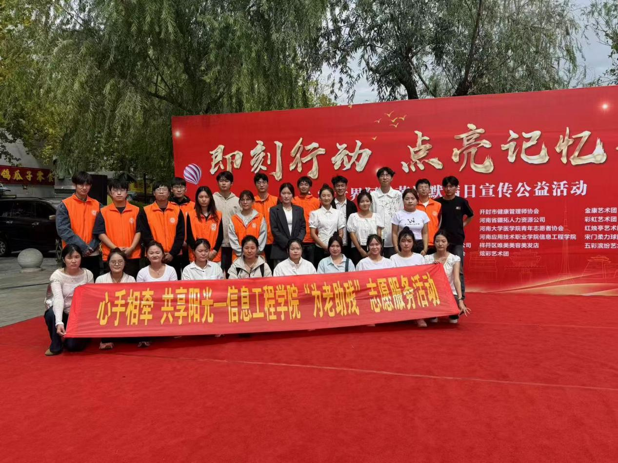 为贯彻落实党的二十大精神,弘扬尊老、敬老、爱老、助老的中华民族传统美德,2024年9月21日,信息工程学院团总支组织青年志愿者赴开封市龙亭区西关北街参加开封市志愿者协会发起的“即刻行动 点亮记忆之光--9.21世界阿尔茨海默病日宣传公益活动”。