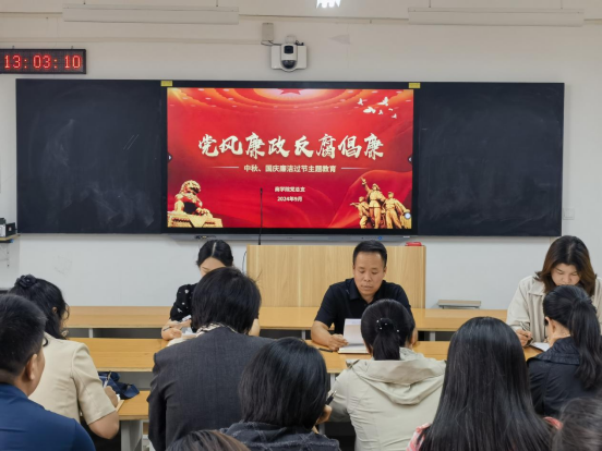 为贯彻落实中央八项规定及其实施细则精神,持续强化全体教师的纪律意识、廉洁意识,积极营造崇廉尚俭、文明清爽的节日风气和良好育人环境,9月24日下午,商学院党总支组织召开廉洁过节主题教育会议,会议由商学院党总支书记苏云峰主持,全体教师参加会议。