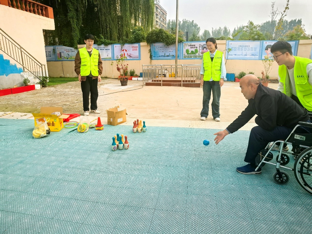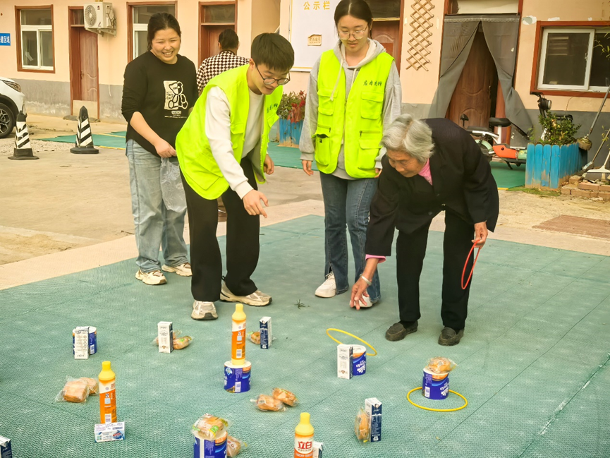 活动现场,志愿者们不仅为老人带来水果、面包、牛奶等生活用品,还耐心主动地与老人唠家常。现场还组织开展了套圈、保龄球等趣味小游戏,各位老人积极参与,笑声满满,掌声不断。一句句朴实的关心,让老人们喜笑颜开,度过一个暖心又欢乐的重阳节。