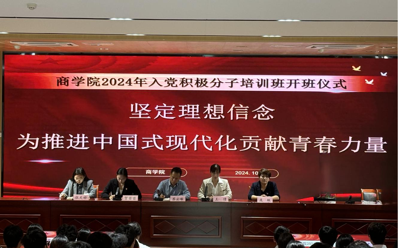 为深入学习贯彻党的二十大和二十届三中全会精神,引导入党积极分子坚定政治方向、端正入党动机、积极向党组织靠拢,充分发挥基层党组织在新时代大学生思想政治教育工作中的突出优势。10月18日,商学院在开封校区北院举行2024年入党积极分子培训班开班仪式。商学院党总支书记苏云峰、学院相关教师出席会议,会议由学院党总支副书记王倩主持。