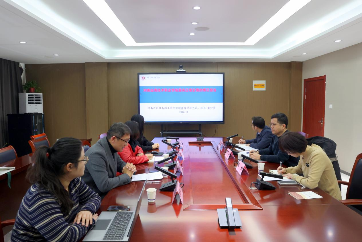 11月25日上午,由河南经济与社会大数据应用开发研究院执行院长陈文山,河南省终身教育协会重要委员吴静、张军等组成的河南省学习型城市建设监测组的专家组到我校开展关于学习型社会建设与区域发展调研工作。继续教育学院院长孟付荣陪同调研,会议由继续教育学院副院长荆伟科主持。