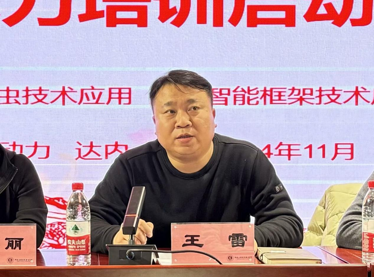 王雷院长对参会学生进行动员讲话,他指出,作为人工智能和大数据专业的学生,毕业后可以从事数据智能、语音智能、物联网、虚拟现实、行业大模型应用等领域的工作。近年来,信息工程学院与高新技术企业多次合作开展人工智能技术应用培训,通过推动产业链、专业链、信息链、技术链“四链”融合,在特色专业发展领域和重点专业领域推出一批特色融合示范性培训项目,探索出了可复制、可推广的典型经验。此外,王雷院长对下一步的学习提出了明确的要求,要求同学们严肃对待培训,认真完成线上、线下学习任务,获得量化积分,考取合格证书。