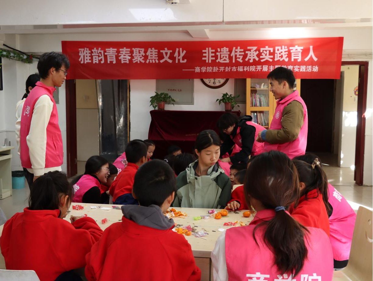 为传递爱心与温暖,给福利院的孩子们带去欢乐与陪伴,培养商学院学生的社会责任感。12月4日,商学院党总支副书记王倩带领学院师生赴开封市福利院开展以“雅韵青春聚焦文化 非遗传承实践育人”为主题的教育实践活动。