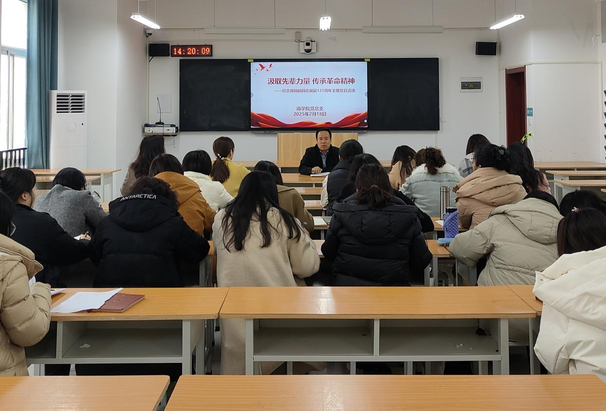 2月19日,为深切缅怀伟大的无产阶级革命家、政治家邓颖超同志,商学院党总支组织开展“汲取先辈力量 传承革命精神——纪念邓颖超同志诞辰121周年”主题党日活动。商学院党总支书记苏云峰及全体党员教师参加,此次活动旨在让商学院的党员教师们从邓颖超同志的光辉事迹中汲取精神养分,传承红色基因、增强党性修养。