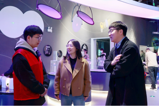 签约结束后,刘亚娟一行实地看望了正在馆内进行志愿服务活动的小筑志愿服务队队员。刘亚娟对队员们的工作给予了充分肯定,并鼓励大家继续发扬志愿服务精神,在实践中锻炼自我,为科技馆的运行和科普事业的发展贡献更多力量。队员们表示,将以更加饱满的热情投入到志愿服务中,展现当代大学生的良好风貌。