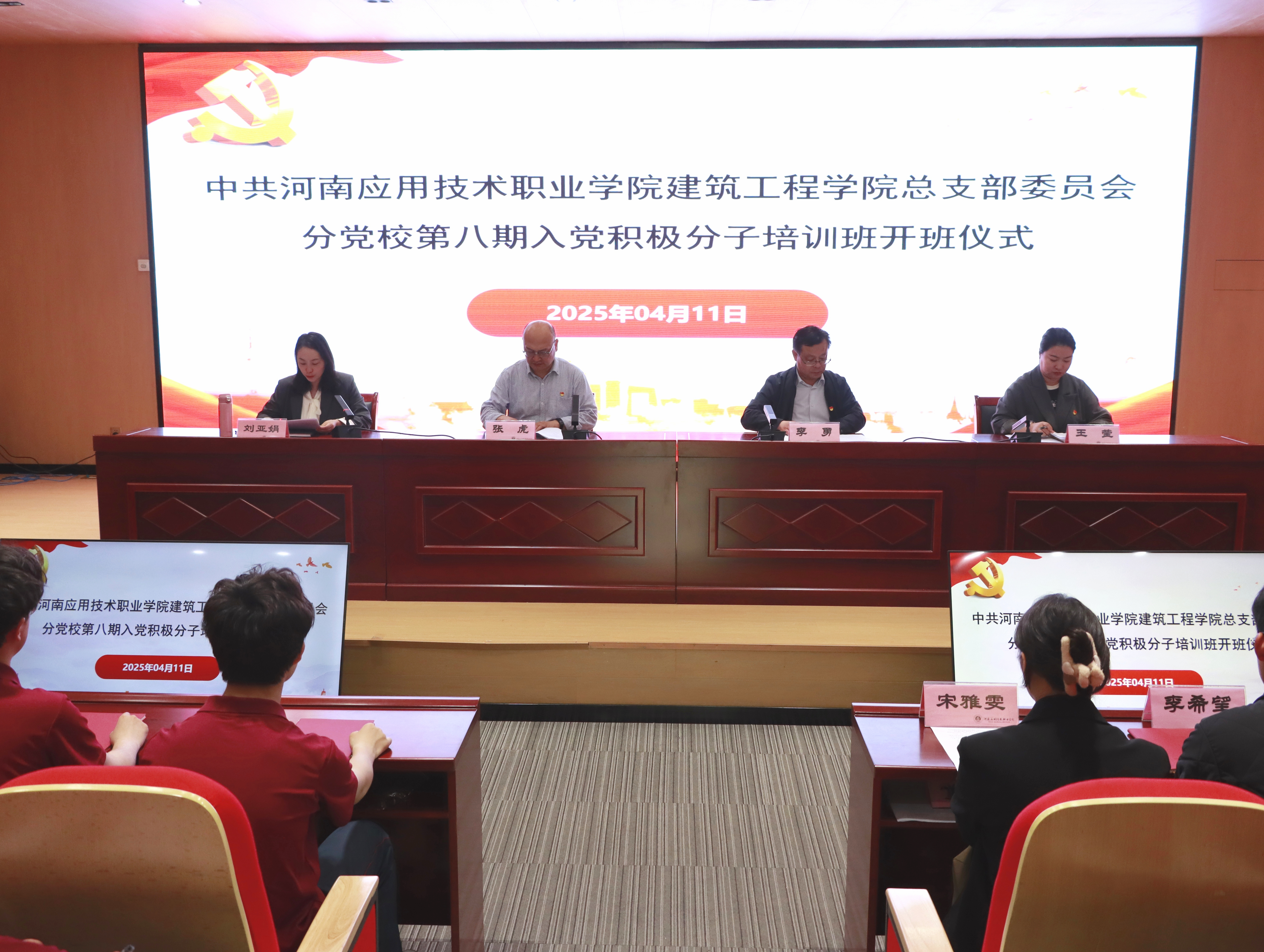 为深入学习贯彻习近平新时代中国特色社会主义思想和党的二十大精神,提高入党积极分子的思想水平和理论素养,把好入党“第一关”,切实做好党员发展工作。2025年4月11日,建筑工程学院党总支于开封校区北院D102会议室举行第八期分党校入党积极分子培训班开班仪式,学院党总支书记张虎,党总支副书记、院长李勇,党总支副书记刘亚娟,部分党员教师及第八期入党积极分子出席开班仪式。仪式由刘亚娟主持。