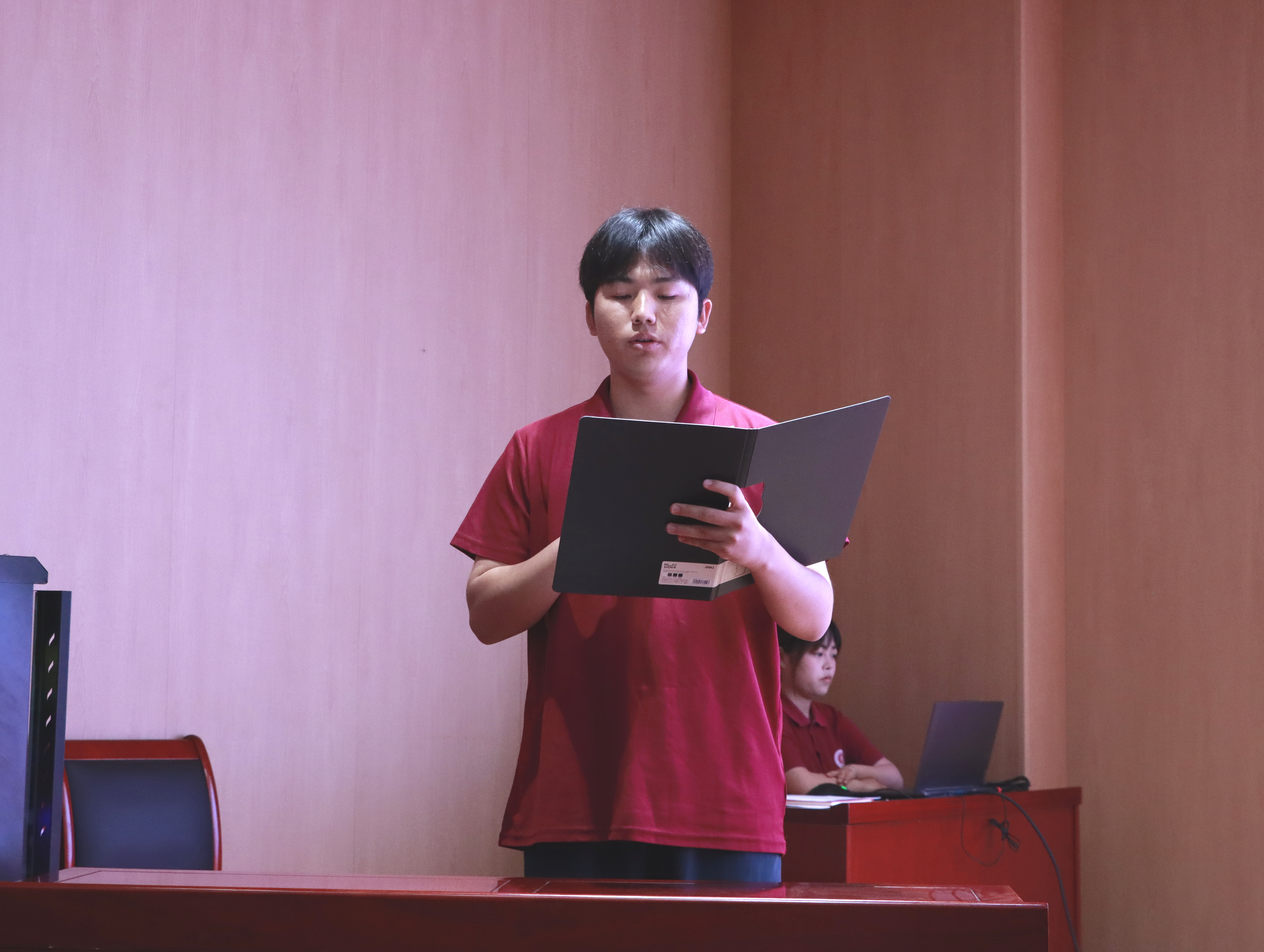 仪式在庄严的国歌声中拉开序幕。教师代表岳锐金同志和学生代表王俊文同志进行发言,随后,组织委员王莹同志宣读《中共河南应用技术职业学院建筑工程学院总支部委员会第八期分党校学员培训方案》。