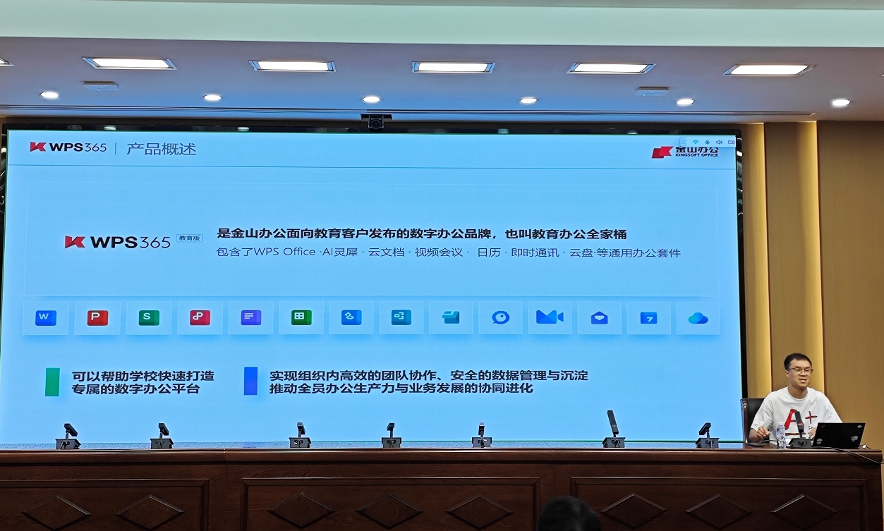 培训期间,金山办公培训讲师张星以“全员提效的数字办公全家桶”为题对WPS365教育版的基础使用和进阶技巧以及WPS灵犀AI等进行了详细的介绍和操作。通过现场实机操作展示智能文档生成直观呈现人工智能技术在教育信息化领域的创新应用。