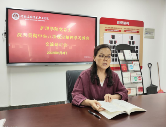 为深入贯彻落实中央八项规定精神,推动基层党组织作风建设走深走实,6月3日下午,校党委副书记、工会主席陈君丽教授深入护理学院,参加护理学院党总支深入贯彻中央八项规定精神学习教育交流研讨会,并针对学院发展实际开展专项调研,护理学院全体教职工参与本次活动。