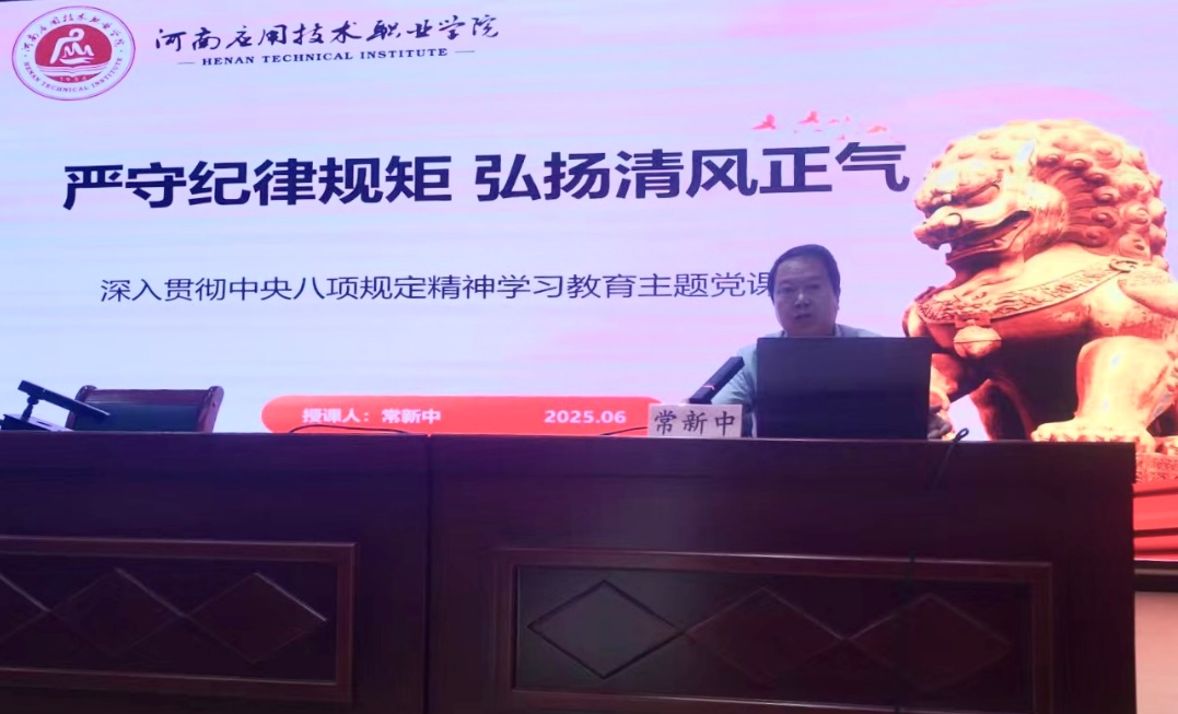 常新中从中央八项规定精神的核心要义到工作学习与中央八项规定的关系,再到师生如何践行中央八项规定精神三个方面进行了深入的讲解。他强调,全体党员要深入学习中央八项规定精神并将其融入到日常工作和学习中。教师要以“四有”好老师标准要求自己,严守教学、廉洁从教、坚守教育初心。学生要主动学习党的理论知识,提高思想觉悟,践行社会主义核心价值观。此次党课,政策解读精准、案例剖析透彻、践行指导明确,为学院师生带来了一次深刻的思想淬炼与党性洗礼。