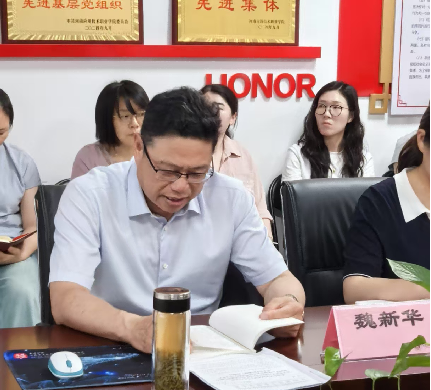 就如何坚定不移贯彻中央八项规定精神,魏新华提出三点要求:一是要强化理论武装,党员干部应以习近平总书记关于作风建设的重要论述为指引,筑牢思想根基,融入日常,增强贯彻落实的自觉,树立作风标杆;二是要推进自查自纠,将个人自查与组织查改联动。党员干部需对标全面查摆,立行立改,借整改反思提升;三是要严格遵守规定,工作摒弃形式主义,聚焦实效、优化流程;生活抵制奢靡,倡导勤俭,立足本职担当作为,以务实作风助力学校发展。