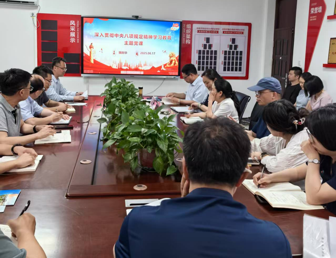 为进一步纵深推进全面从严治党,强力夯实党员干部作风建设根基,促进中央八项规定精神在基层落地生根、开花结果,6 月 17 日下午,校党委副书记魏新华以“深入贯彻中央八项规定精神学习教育”为题,为医药学院全体教职工上了一堂深刻且务实的专题党课,会议由医药学院党总支书记张亮主持。