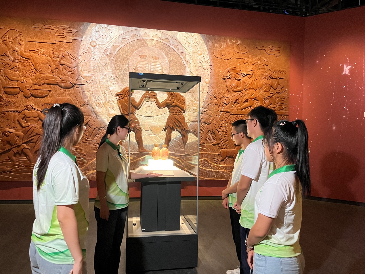 研学第二站,研学团队来到被誉为“仰韶文化标尺”的大河村遗址公园。在《大河流域:人类文明的摇篮》《仰韶文化:华夏文明的奠基者》《仰韶文化标尺:大河村遗址》《文明星火》四个主题展厅中,数字技术与文物展示相结合,让5500年前先民的生活场景跃然眼前。同学们通过沉浸式体验,系统了解了黄河文明发展脉络,增强了对中华文明源流的认知。