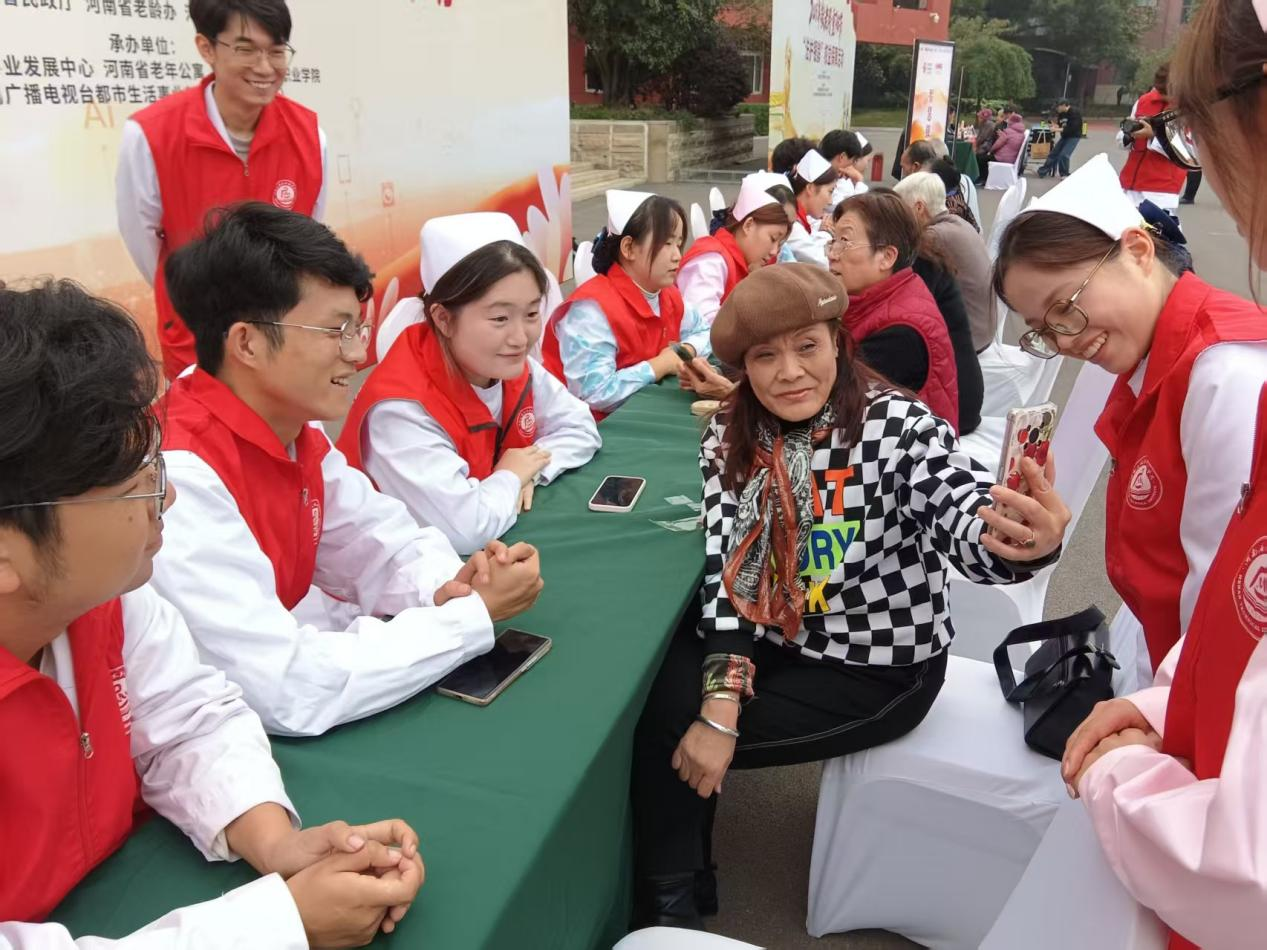 “桂香漫城添暖意,指尖传技润银铃”。10 月 28 日至 29 日重阳节来临之际,由河南省民政厅、河南省老龄办与河南广播电视台联合主办的第三届大象敬老节,分别在郑州市五一公园、河南省老年公寓温情启幕。康养护理学院师生志愿者组成的 “智慧助老服务队” 全程参与,以 “智慧银龄,数字助老” 为主题,手把手教老年朋友玩转智能手机,让科技红利跨越 “数字鸿沟”,为敬老节注入青春暖流。