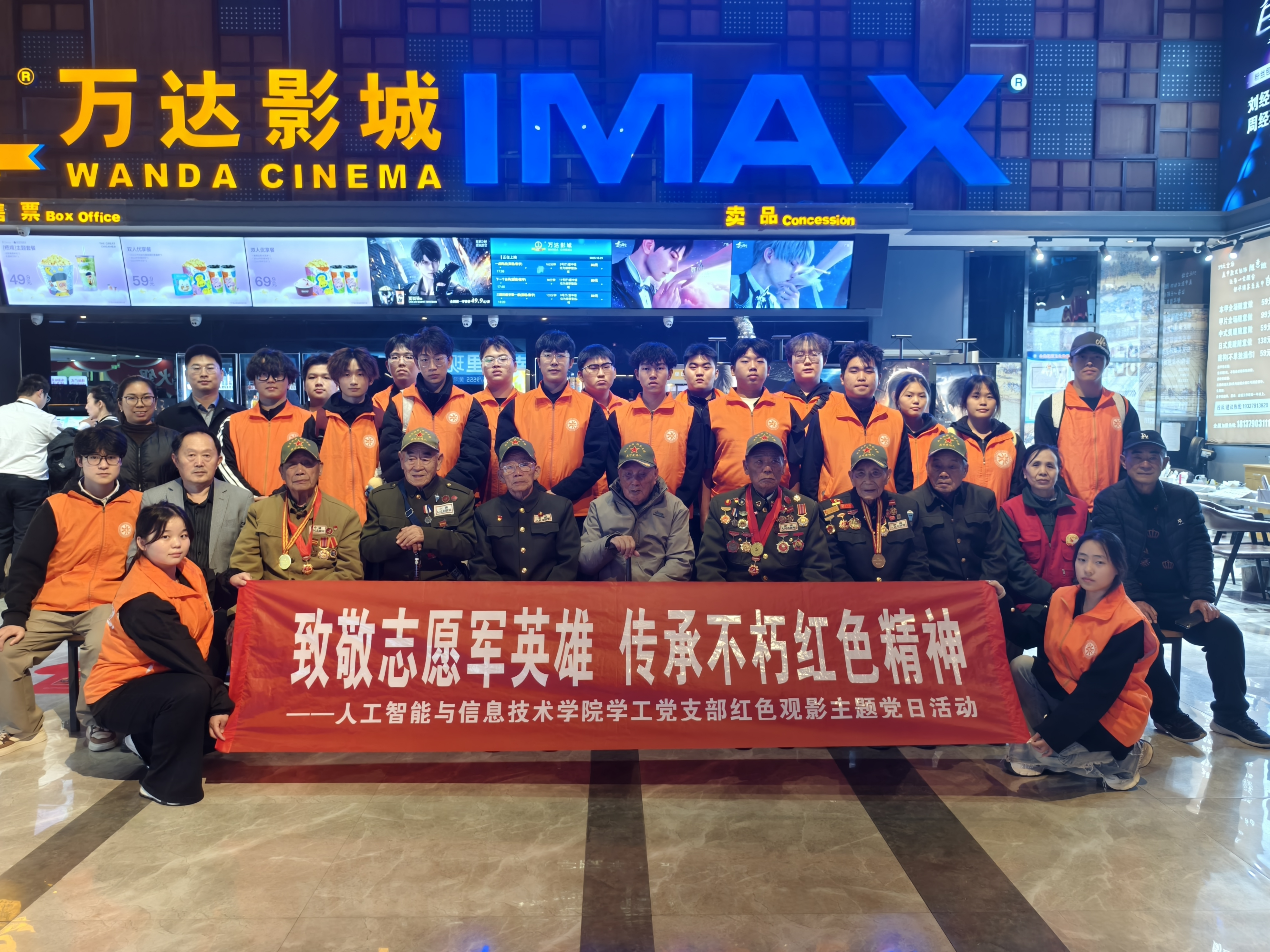 为深入学习贯彻习近平新时代中国特色社会主义思想,弘扬伟大抗美援朝精神,近日,人工智能与信息技术学院学工党支部组织部分党员和入党积极分子,邀请志愿军老战士一同前往开封万达影城开展红色观影主题党日活动。