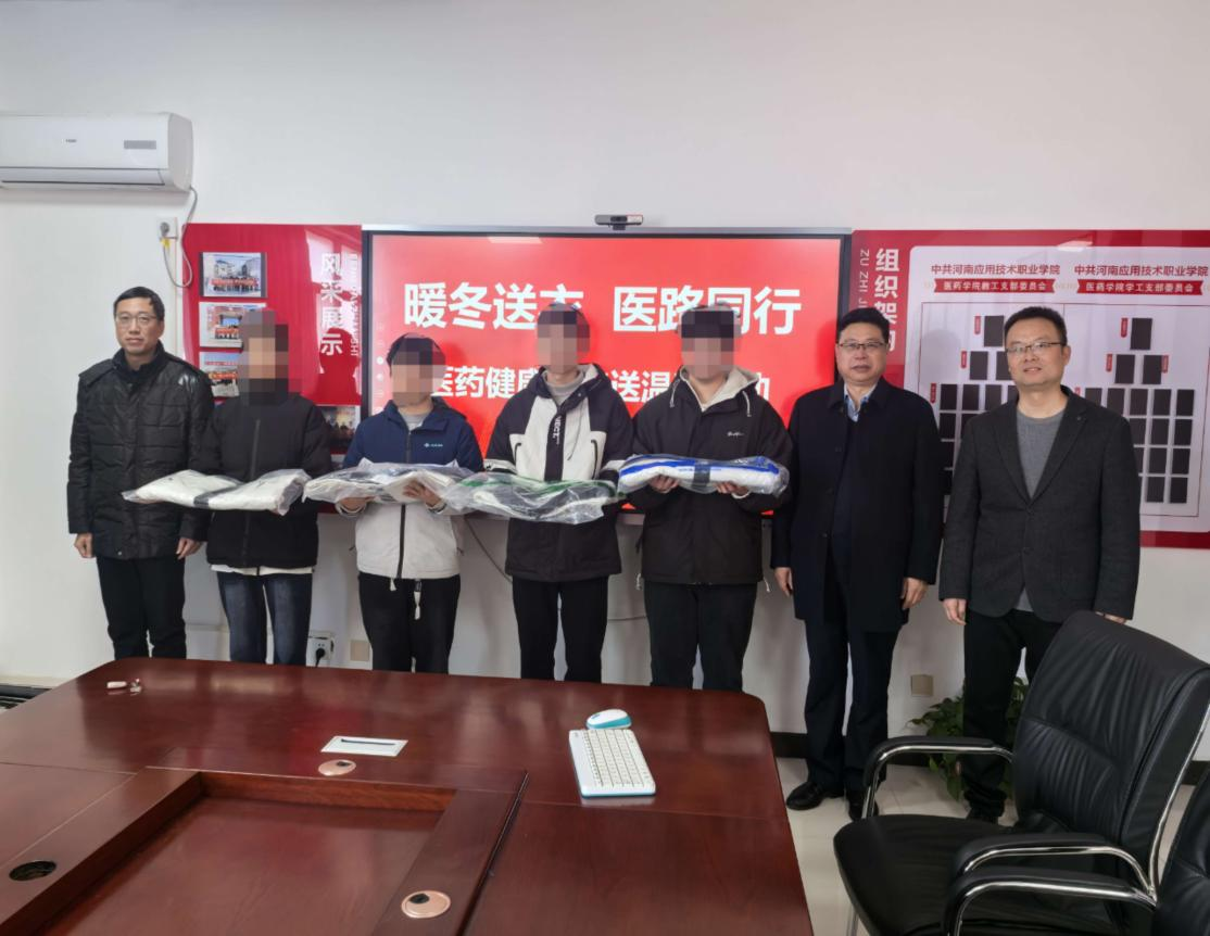 为切实做好家庭经济困难学生帮扶工作,12月6日,医药健康学院“暖冬送衣 医路同行”主题活动,在办公楼408党员活动室温情开展。学校党委副书记、开封校区管委会主任魏新华,医药健康学院党总支书记张亮,副书记郑言及学院部分师生代表共同参加活动。