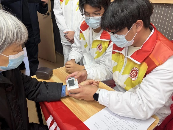 活动现场,党员师生志愿者们分工明确、热情服务,围绕健康保障和数字技能提升两大核心内容开展服务。志愿者们为到场老年人提供免费血压测量、血糖检测服务,同时,还针对老年人在慢性病管理、冬季养生等方面的疑问,进行一对一专业解答,提供科学实用的健康指导,得到老年朋友们的一致好评。
