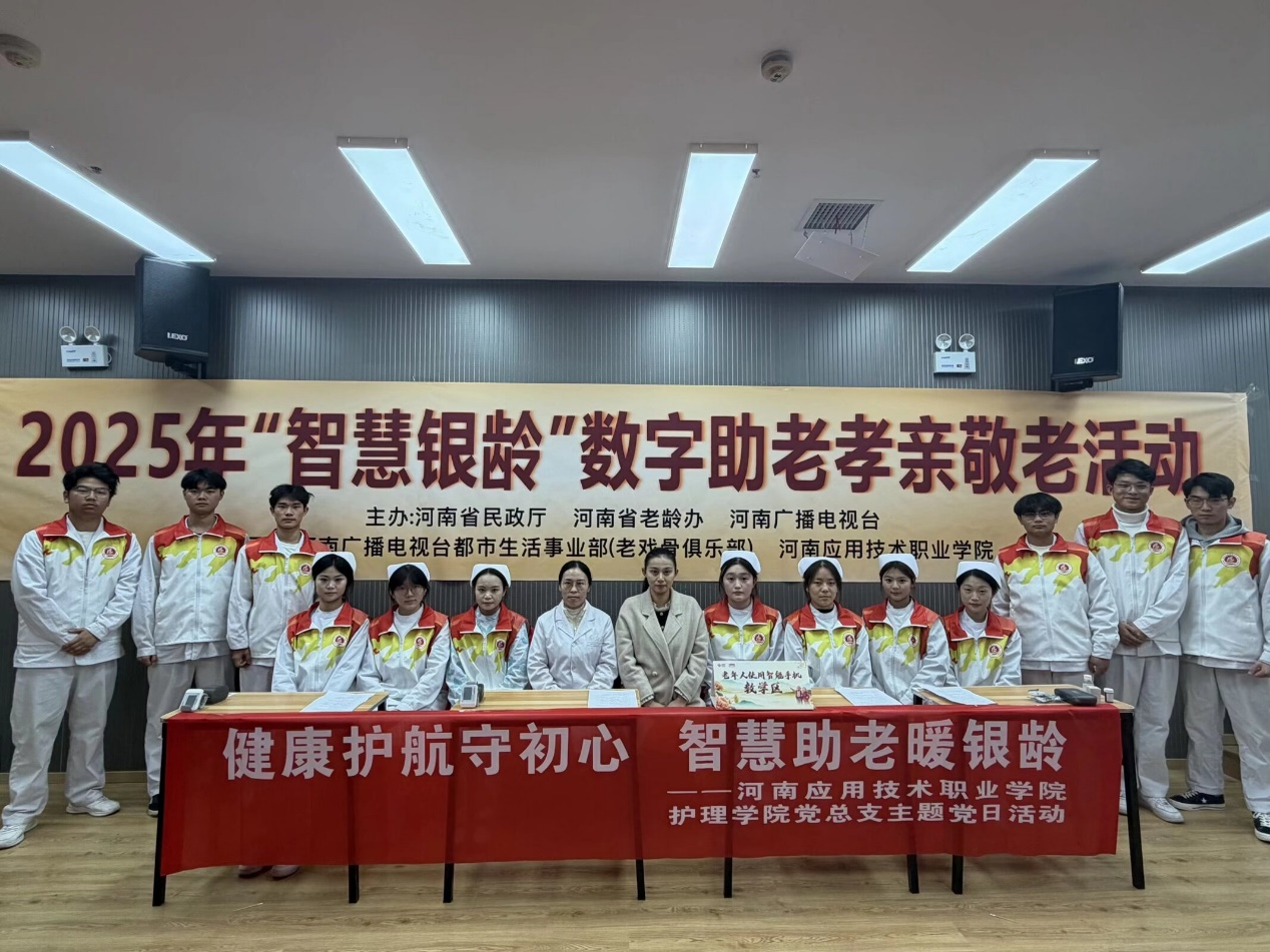 为深入学习贯彻习近平新时代中国特色社会主义思想,弘扬尊老敬老爱老的传统美德,切实解决老年人在数字生活和健康管理中遇到的难题,2025 年 11 月 19 日下午,护理学院党总支联合河南广播电视台都市生活事业部,开展 “健康护航守初心,智慧助老暖银龄” 主题党日活动。学院部分党员教师及入党积极分子参与活动,用专业服务为老年群体送上温暖与关怀。